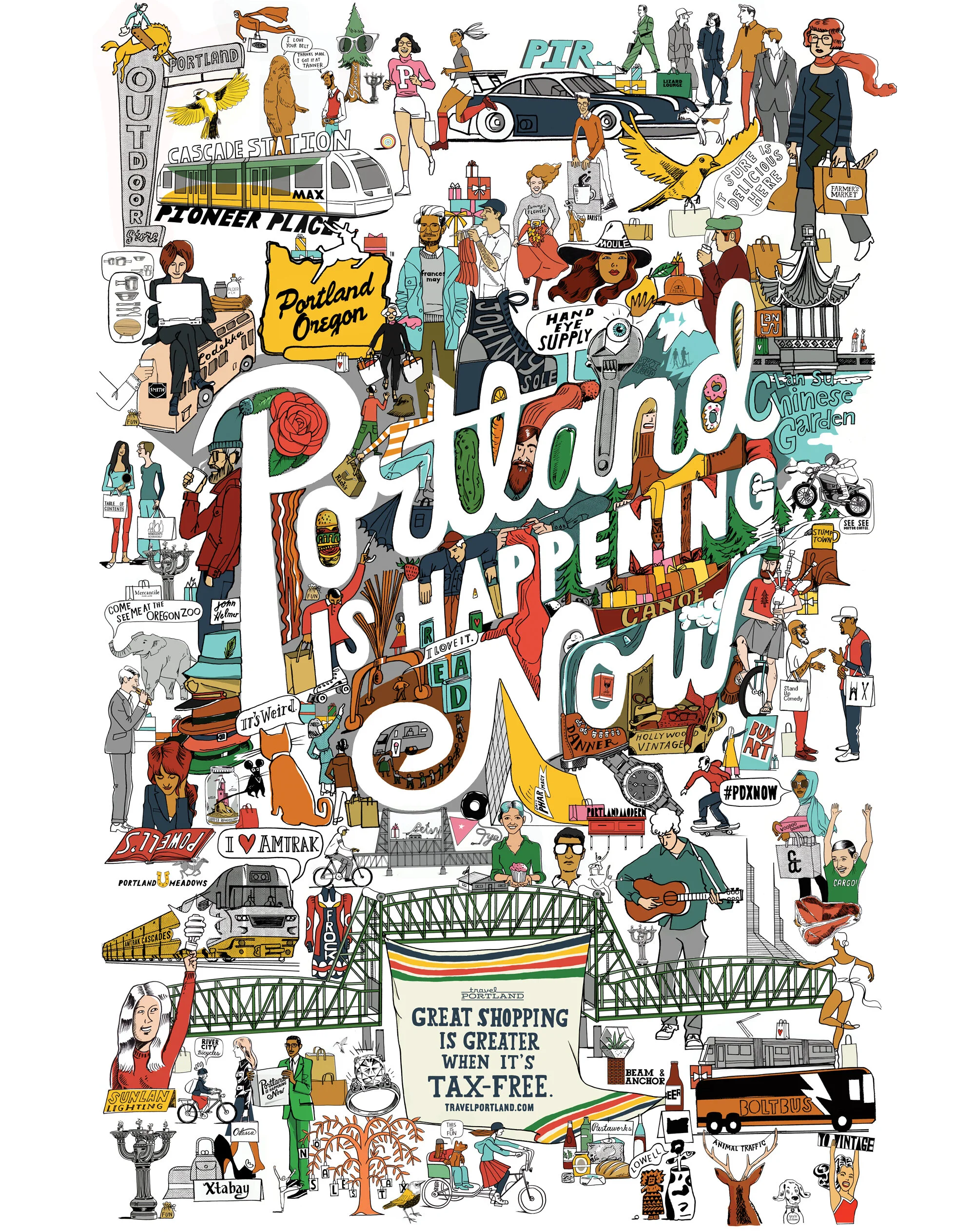 To support the “Portland is Happening Now” campaign we built the largest freestanding cuckoo clock in North America and put it in other cities to invite people to travel down and experience the wonder of Portland for themselves.